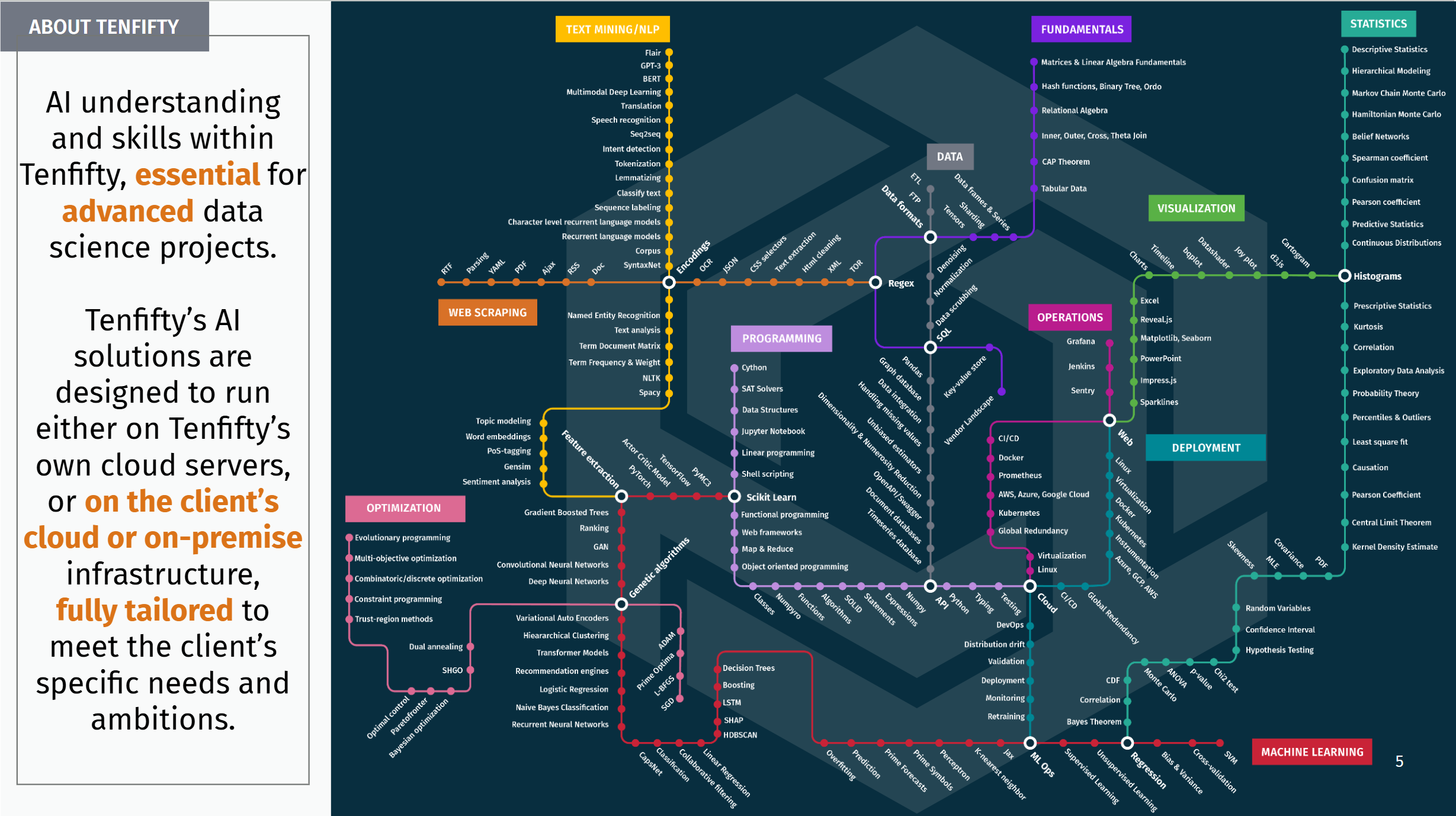 Tenfifty is your experienced data science provider when you need to optimize or automate your business. For over two decades, we have delivered tailored services based on AI, data science and crawling.
